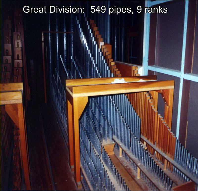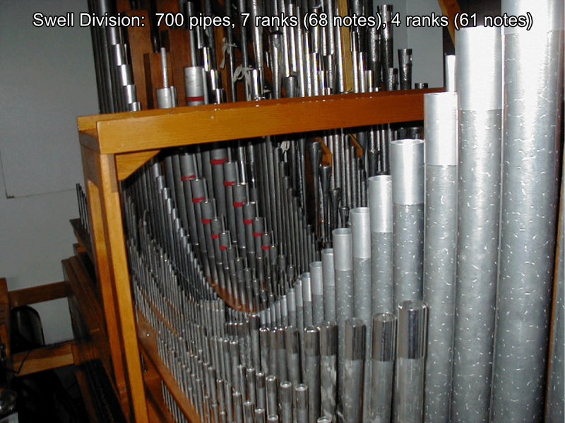 In 1987, Austin Organs, Inc. performed more major repairs to the organ. These included replacing pipes in the Swell Division for the 8' Rohr Flute (4'C up), 8' Trompette, 8' Viola Da Gambe, 8' Viola Celeste, 4' Principal, and the III Plein Jeu and re-voiced the 8' Rohr Flute (#1-#12), 4' Flute Harmonique (rescaled as well), and added the Pedal III Mixture, which is installed on the Great windchest. Again, these re-voiced pipes are from the original Johnson organ. A new Peterson Electronic Relay system was also installed (located in the first floor chamber). The 8' Hautbois in the Swell Division was also keyed to the Positiv Division. Also at this time, the low 12 pipes of the 8' Octave in the Pedal Division were given new life from pipes from the Corpus Christi Catholic Church in Wethersfield, Connecticut. The Catholic church donated these pipes to us which were installed by Austin. For some time afterwards, when Austin went to maintain the organ at the Catholic church, the Priest would ask, "How are our Ecumenical Pipes doing?" The cost for this work was $45,667.00 and was completed on September 22, 1987. On Sunday, July 20, 2003, at a Special All-Church Meeting, called by the Committee on Finance, the Congregation approved an organ restoration proposal from Messrs. Czelusniak et Dugal, Inc. at the recommendation of the Committee on Music.